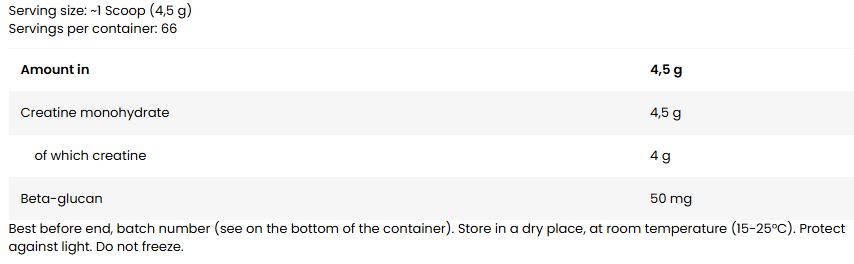 • Yüksek Saflıkta Kreatin Monohidrat: 1 porsiyon (4,5 g) içinde 4 g saf kreatin